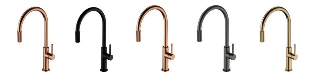 bateria kuchenna w kolorze miedzi, dozownik firmy omnires